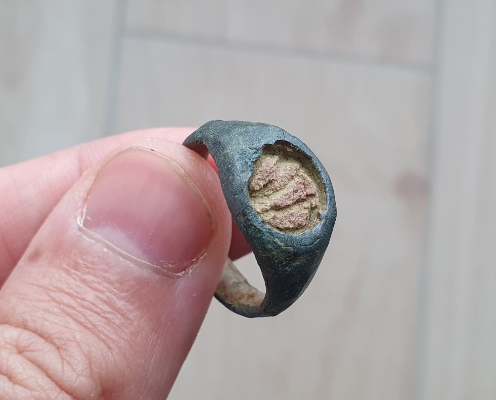 Brass intaglio ring Date of discovery: 2025-11-01 Aproximate location of discovery: Neerlanden, Vlaanderen Context: Fragments of terra sigillata, roman coinage Weight: 7.04 g Size: Ring 24x5x2 mm (D/W/T), Intaglio 9mm D This copper-alloy ring, likely made of brass, dates to the 1st – 2nd century AD and is probably of Roman origin. It was found […]